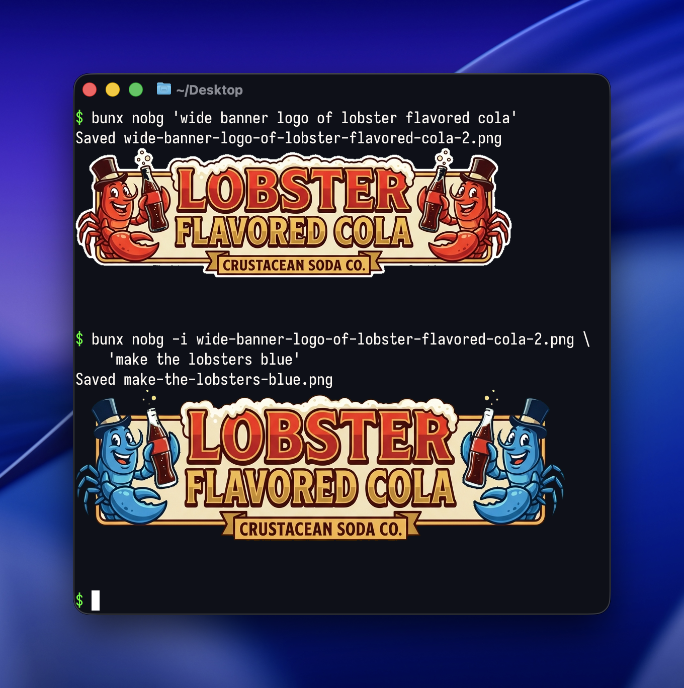 bunx nobg@latest -o logo.png 'minimalist logo'| Flag | Description | Default |